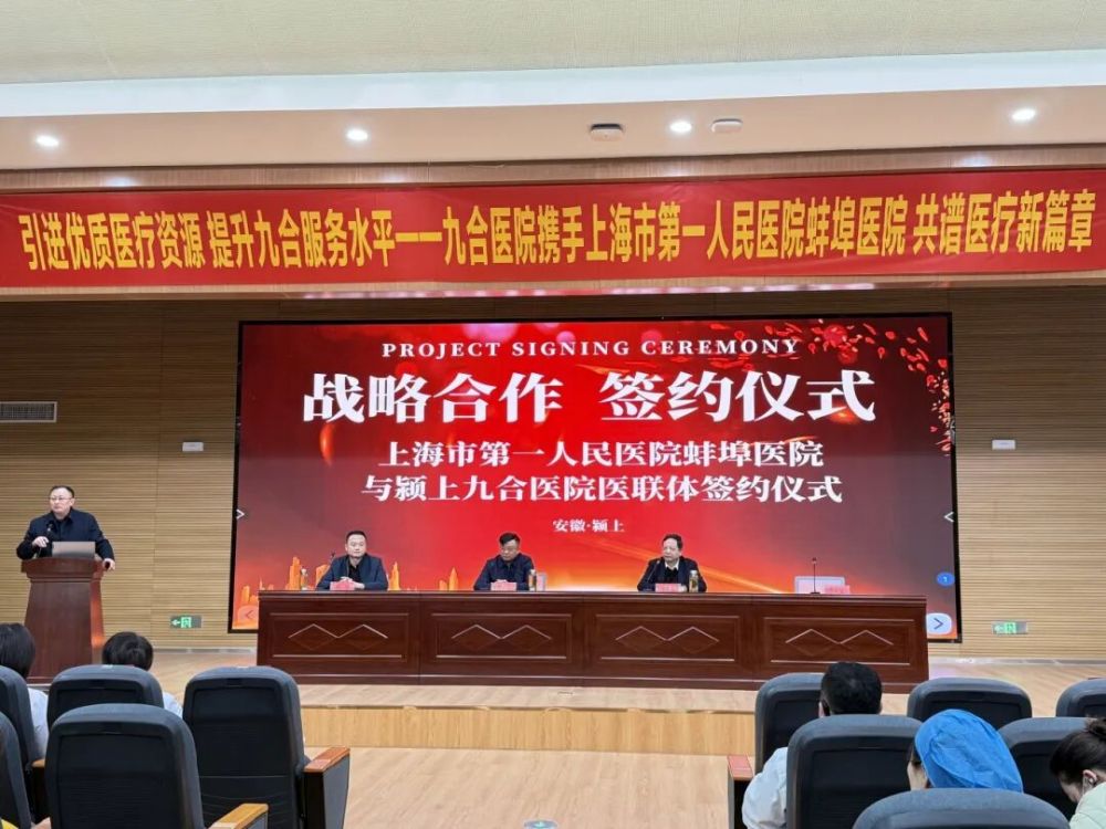为深入落实优质医疗资源扩容和下沉基层的医改要求,推动长三角医疗一体化发展,3月26日,颍上九合医院与上海市第一人民医院蚌埠医院正式签约结成医联体。此次合作搭建起沪皖医疗资源互通的桥梁,让颍上群众在家门口就能享受国家区域医疗中心的优质诊疗服务,为县域医疗卫生事业发展注入新动能。  上海市第一人民医院蚌埠医院作为安徽省首家综合性国家区域医疗中心,汇聚了顶尖的医疗人才、先进的诊疗技术和规范的管理体系;颍上九合医院深耕县域医疗多年,在骨科、心内、康复等学科形成特色优势,是县域民营医疗领域的标杆机构。双方医联体的共建,是落实《关于进一步完善医疗卫生服务体系的意见》要求,推进县域医共体建设、促进分级诊疗的重要实践。